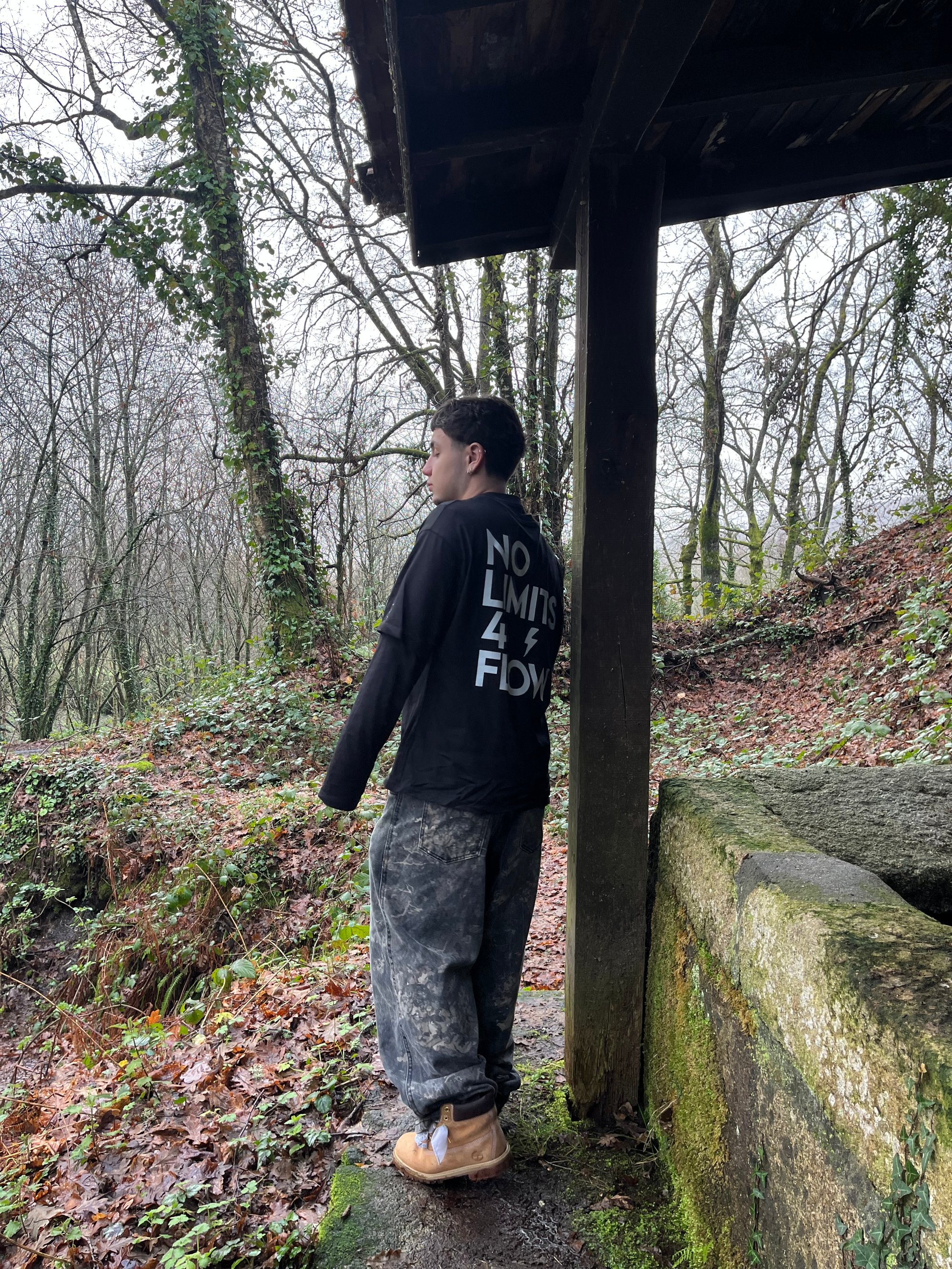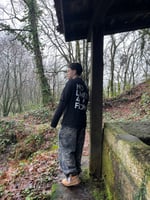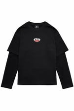 LongSleve de 220 GSM y doble manga hecha al 100% de Algodón teñido de color negro, con impresión tanto delantera como trasera